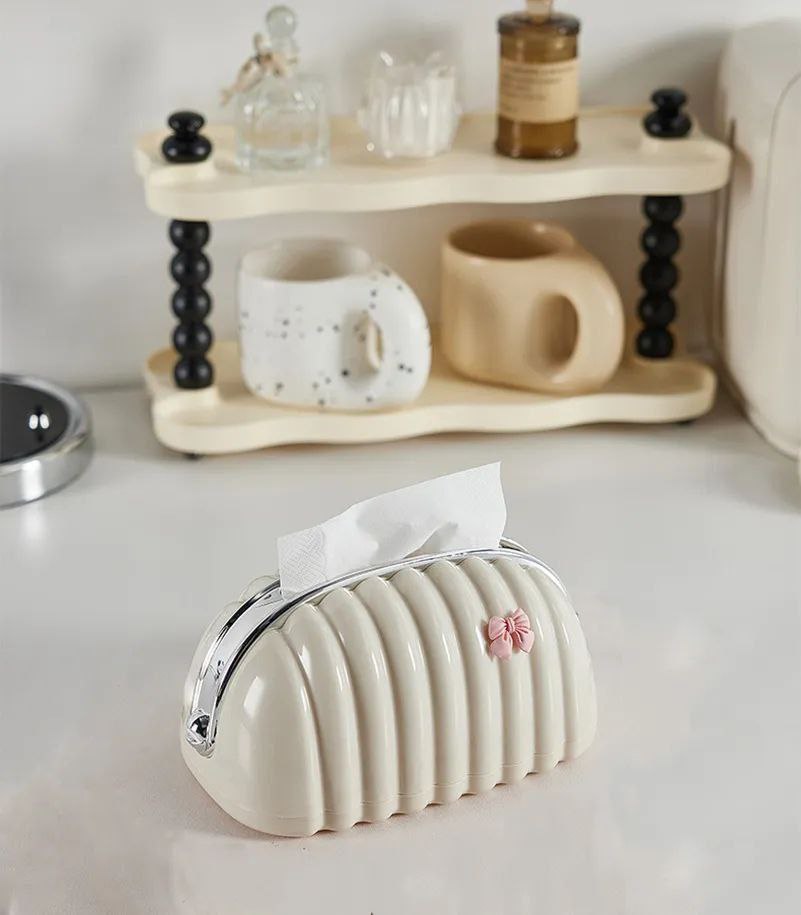 لعشاق الشياكه والذوق الراقي علبه مناديل على شكل شنطة علبه مناديل اكليرك فاخره قطعه ديكوريه شيك جدا هتكمل أناقة الصالون و المكتب مزوده بسوسته لسهوله اخراج المناديل خامه اكليرك عاليه الجوده بيجى معاها استيكرز الفيونكة مستورده