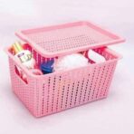 اجمعي بين التنظيم والأناقة مع سبت صوفيا البلاستيك الراتان بغطاء من إنتاج مصنع خورشيد بلاست.