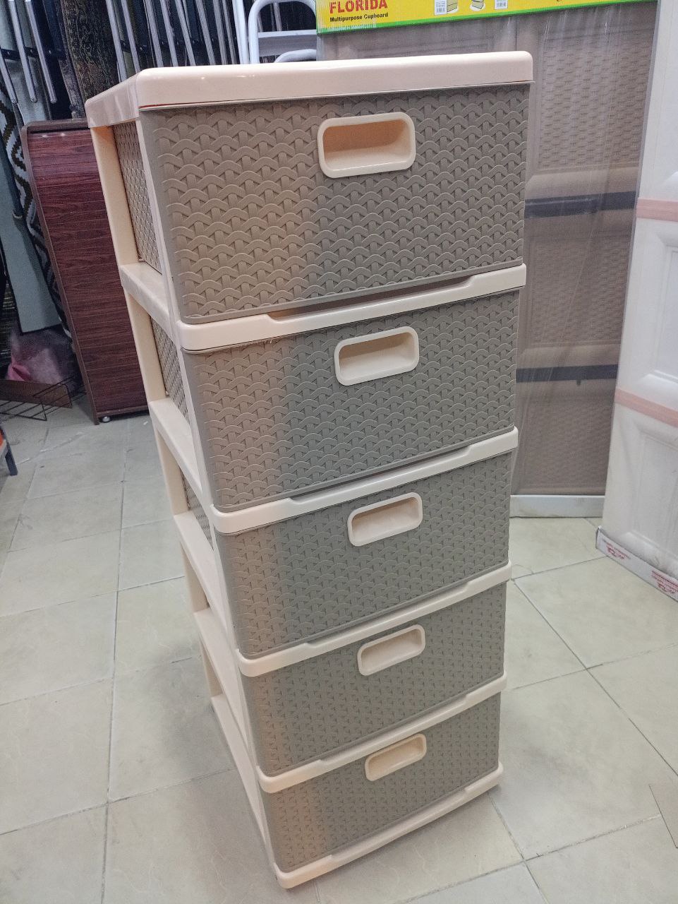 واسم موديله ا “لميس”، وهي متاحة بعدد مختلف من الأدراج مثل 3 و 4 و 5 أدراج، وغالباً ما تكون بتصاميم مستوحاة من الراتان وتتوفر بألوان متعددة