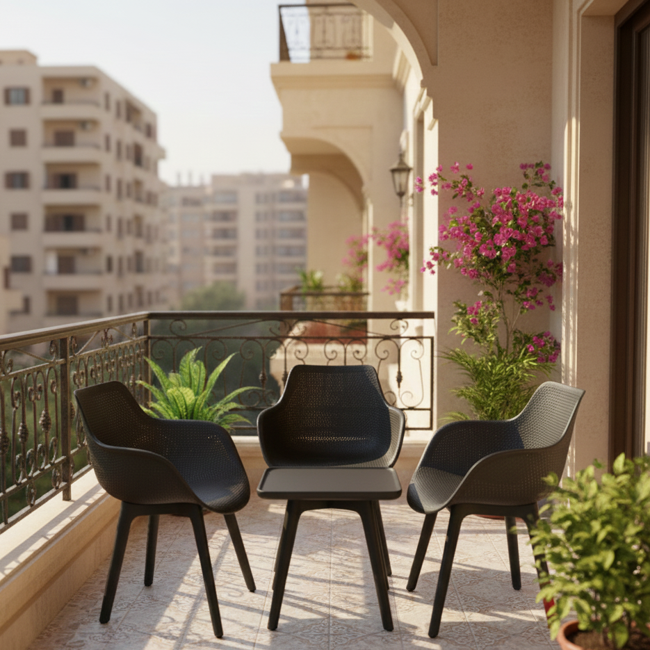 كرسي وترابيزة فيردي اختيار مثالي للبيت، البلكونة، الحديقة أو حتى الكافيهات.