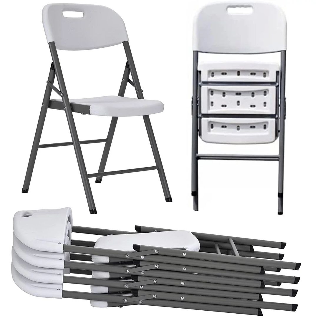 كرسي بلاستيكي قابل للطي ومقعد وظهر مصبوب للتكديس في الاماكن المغلقة والمفتوحه ، اطار الستيل ، شديد التحمل،